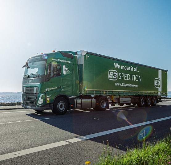 Vores firmanavn og farve er inspireret af de grønne motorvejskilte langs den nuværende motorvej E45, tidligere kendt som ’E3’ mellem Hamborg og Frederikshavn. Og den grønne farve forpligter – så vi er altid klar til at tilbyde den miljørigtige transport, som passer ind i jeres profil.